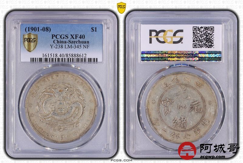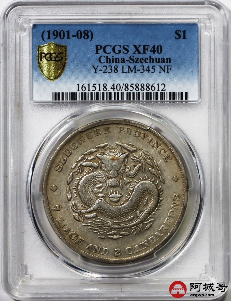 Lot:20 四川光绪七钱二分 原味全内齿 长横标准版 2-5-1 PCGS XF40