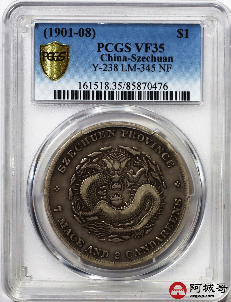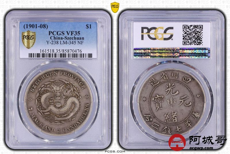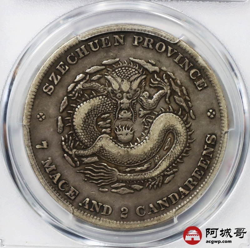 Lot:22 四川光绪七钱二分 金库折 小云无刺龙 6.1-4.1-5-2 PCGS VF35