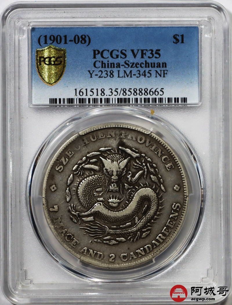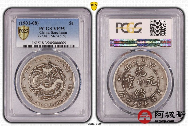 Lot:21 四川光绪七钱二分 原味金折库 73版龙 2-4.3-2 PCGS VF35