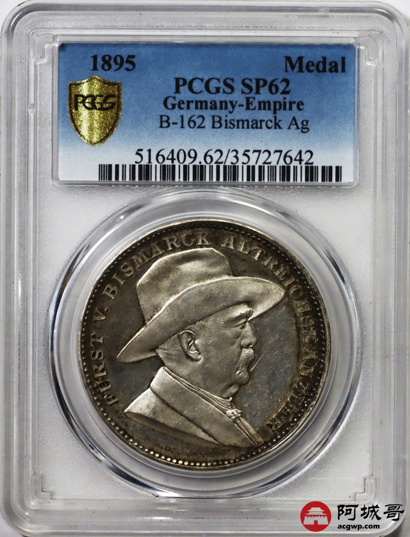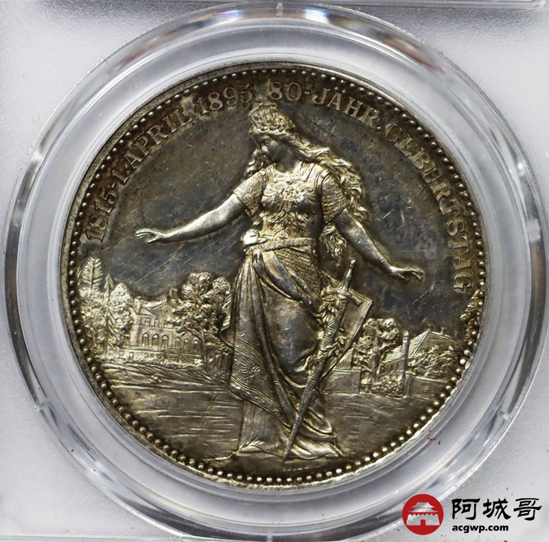 Lot:8 1895年德国纪念俾斯麦诞辰80周年精致银章 PCGS SP62