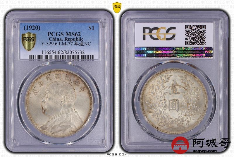 Lot:25 原汁原味转光 九年精发大头壹圆 PCGS MS62