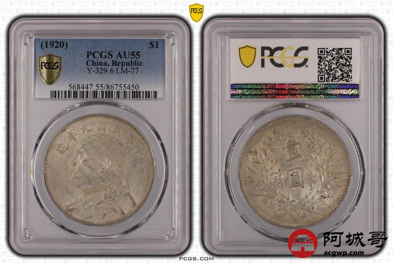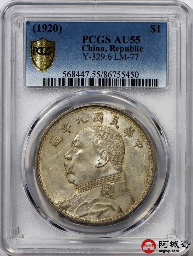 Lot:18 黄油转光 九年精发大头壹圆 PCGS AU55