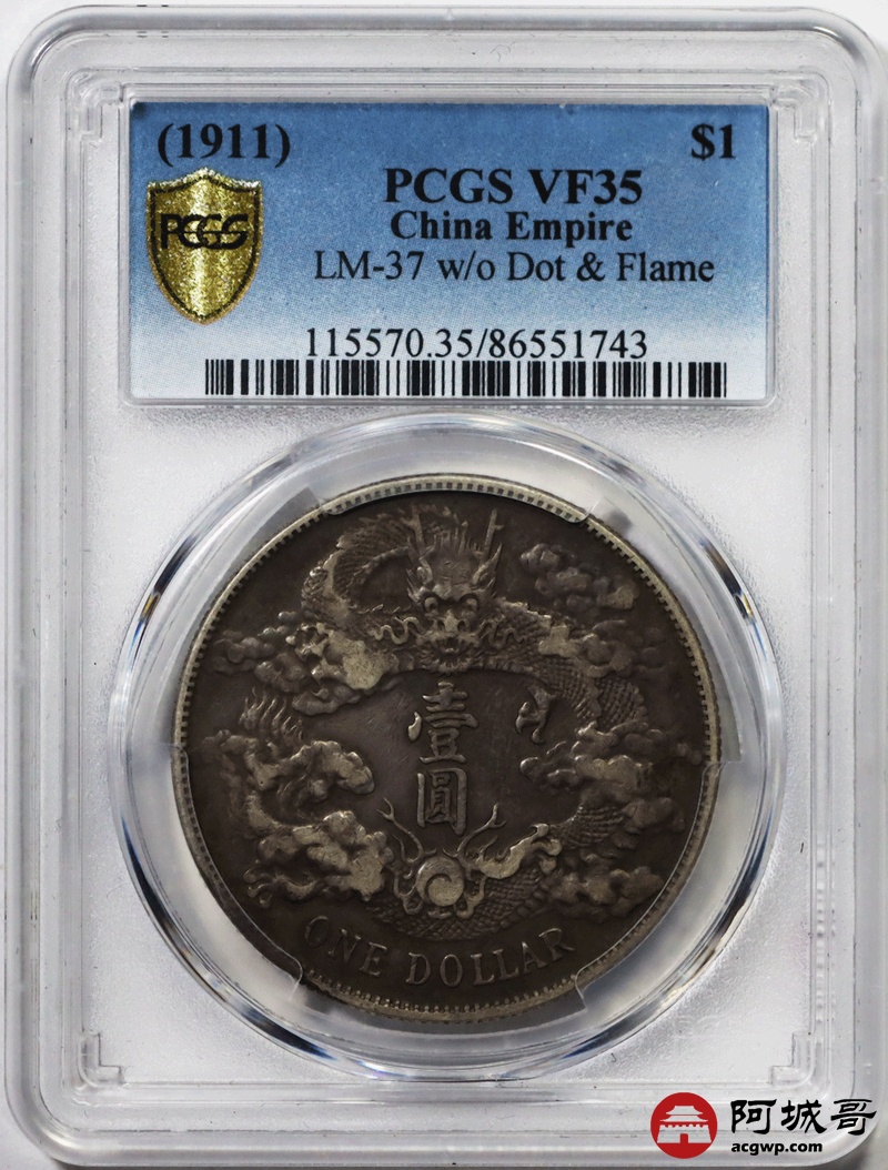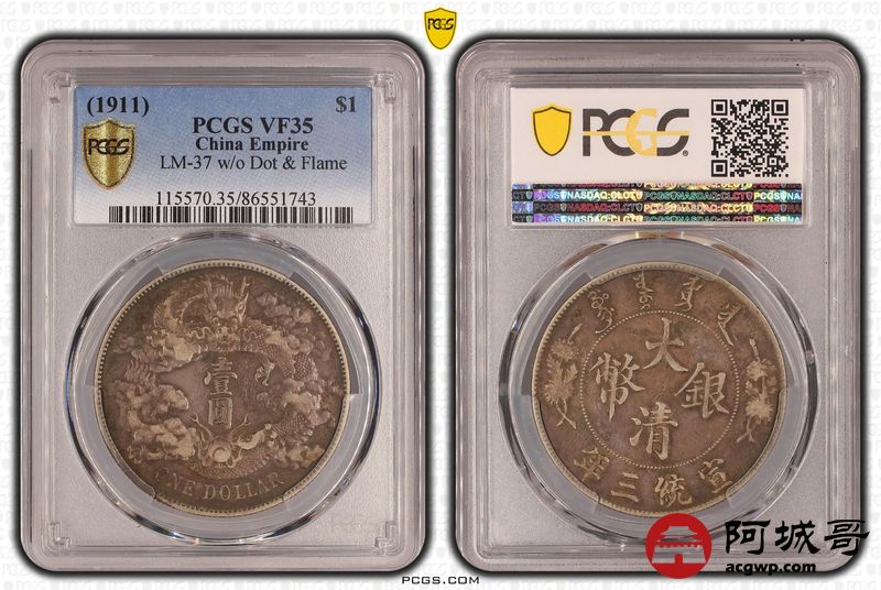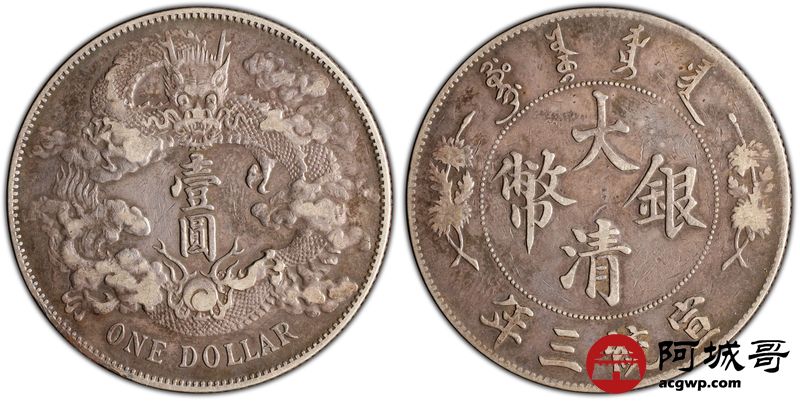 Lot:29 原味老包浆 大清宣三壹圆 PCGS VF35