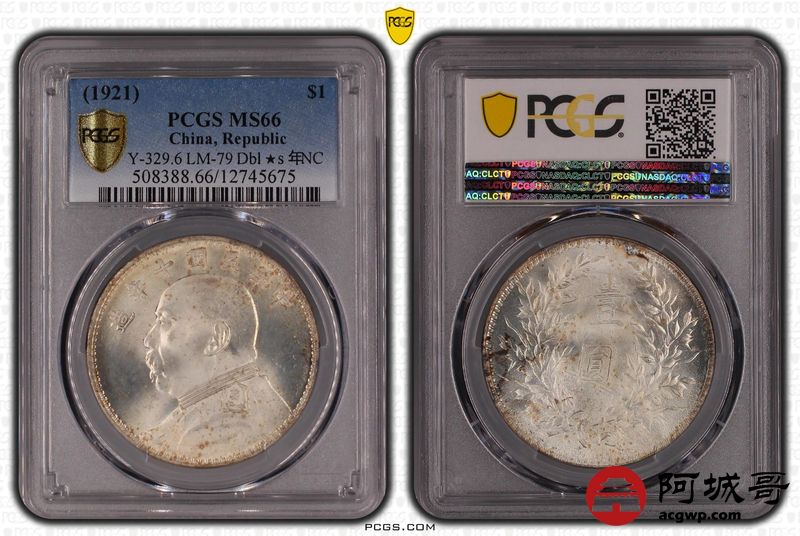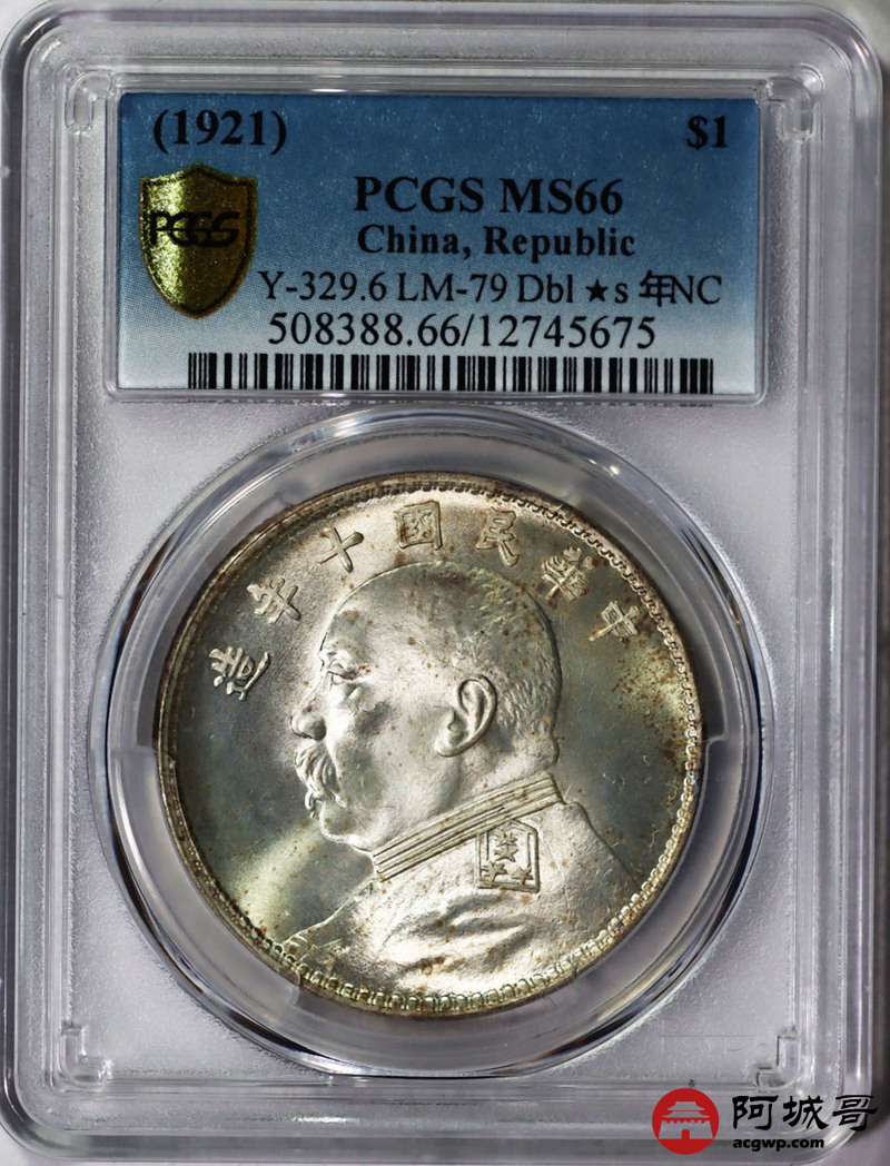 Lot:11 民国十年大头壹圆 曝光 六角星 PCGS MS66