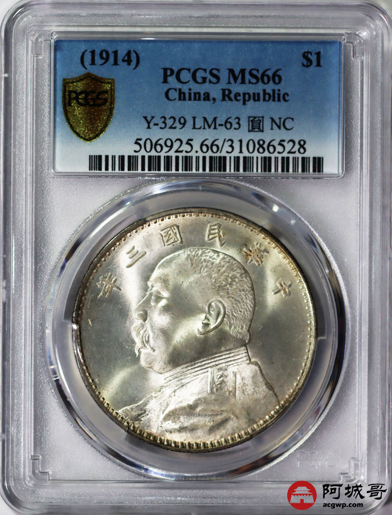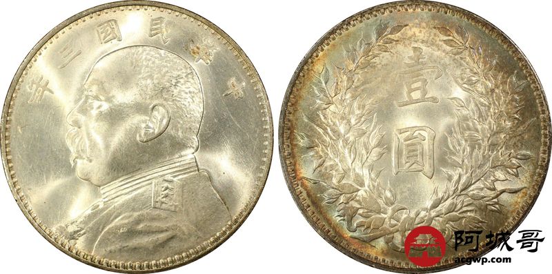 Lot:7 民国三年9大头壹圆 五彩 PCGS MS66