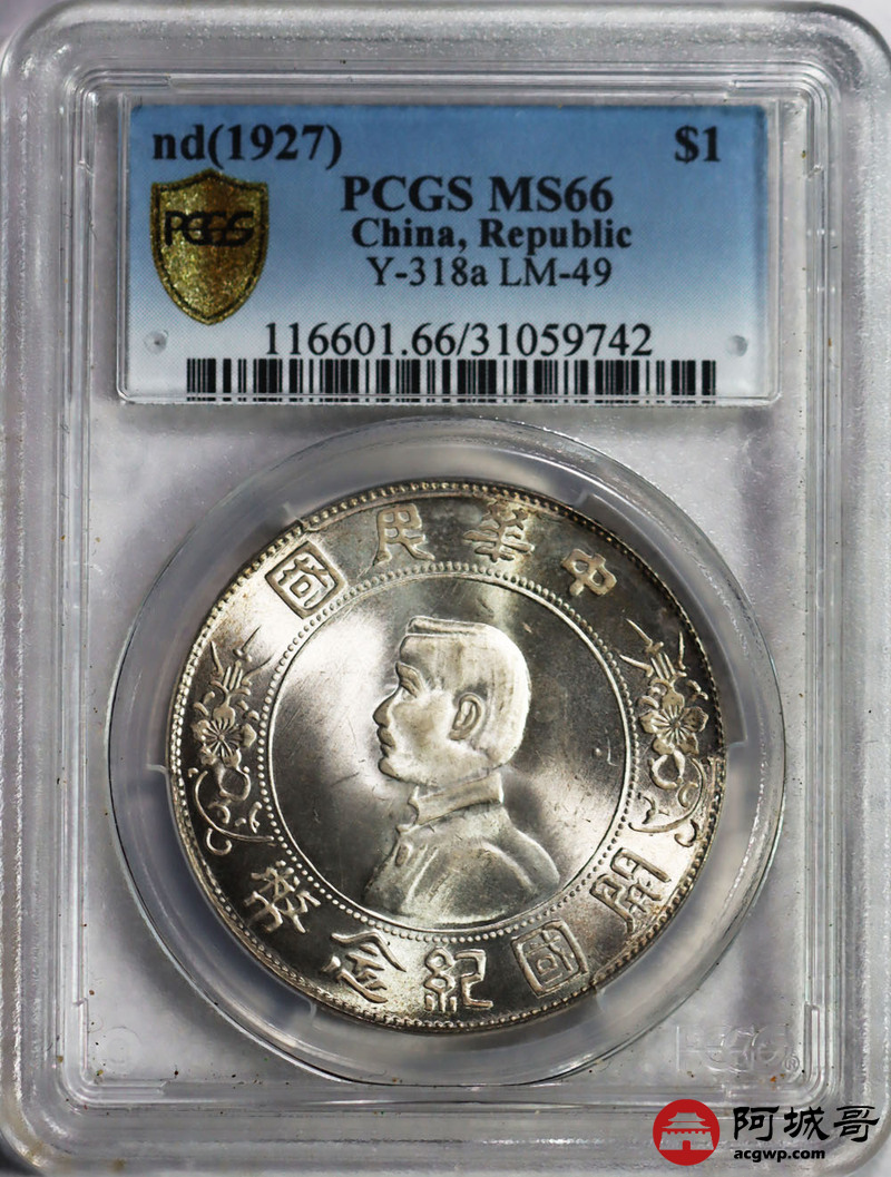 Lot:5 车轮光 开国纪念小头壹圆 PCGS MS66