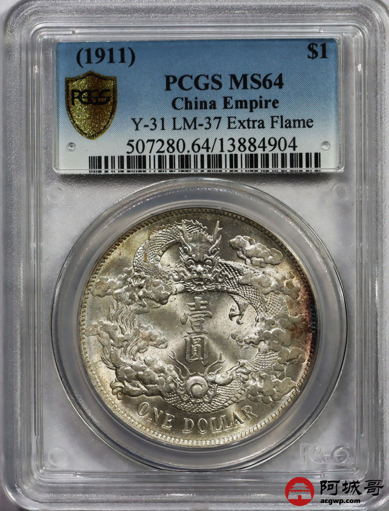 Lot:14 曝转光 大清宣三壹圆 PCGS MS64