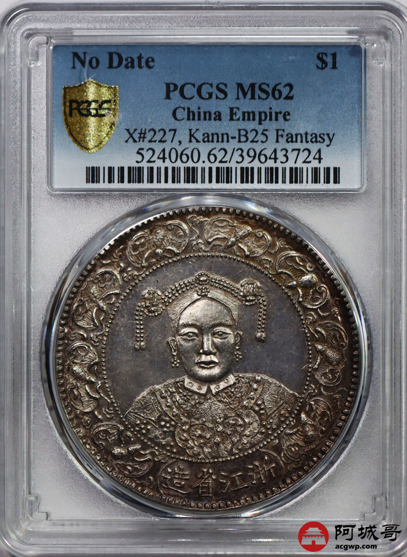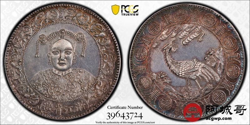 Lot:18 浙江省造慈禧臆造币 PCGS MS62