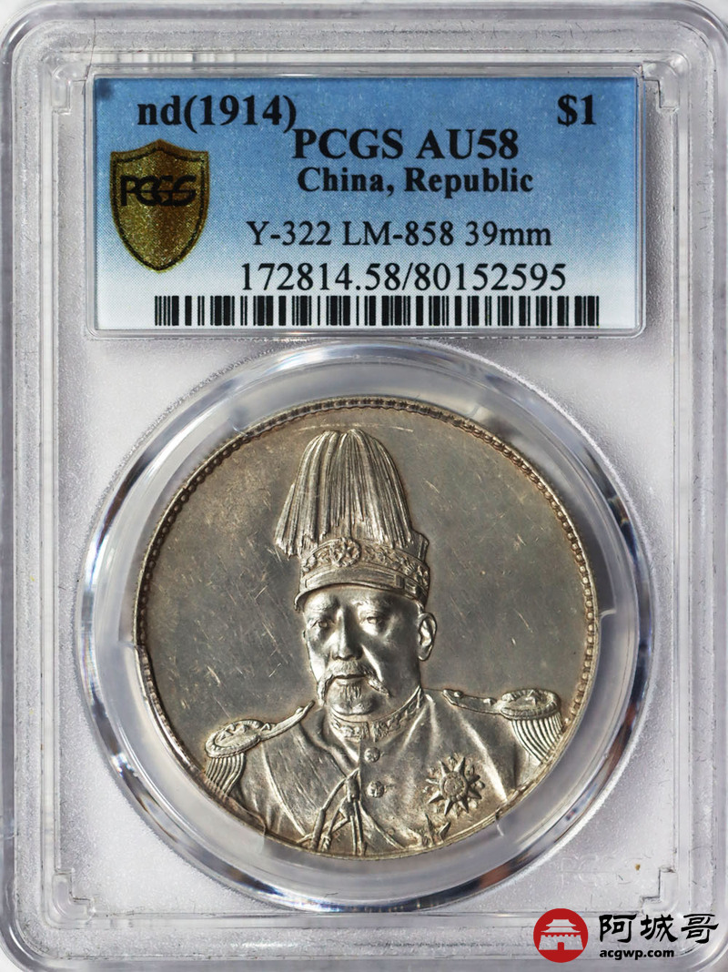 Lot:22 深打转光 共和纪念币 PCGS AU58