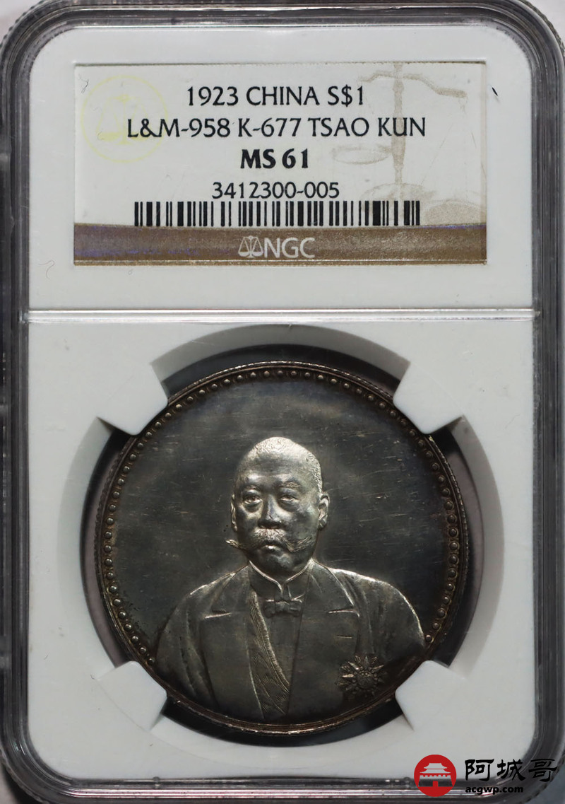 Lot:7 B深打五彩 文曹纪念币 NGC MS61