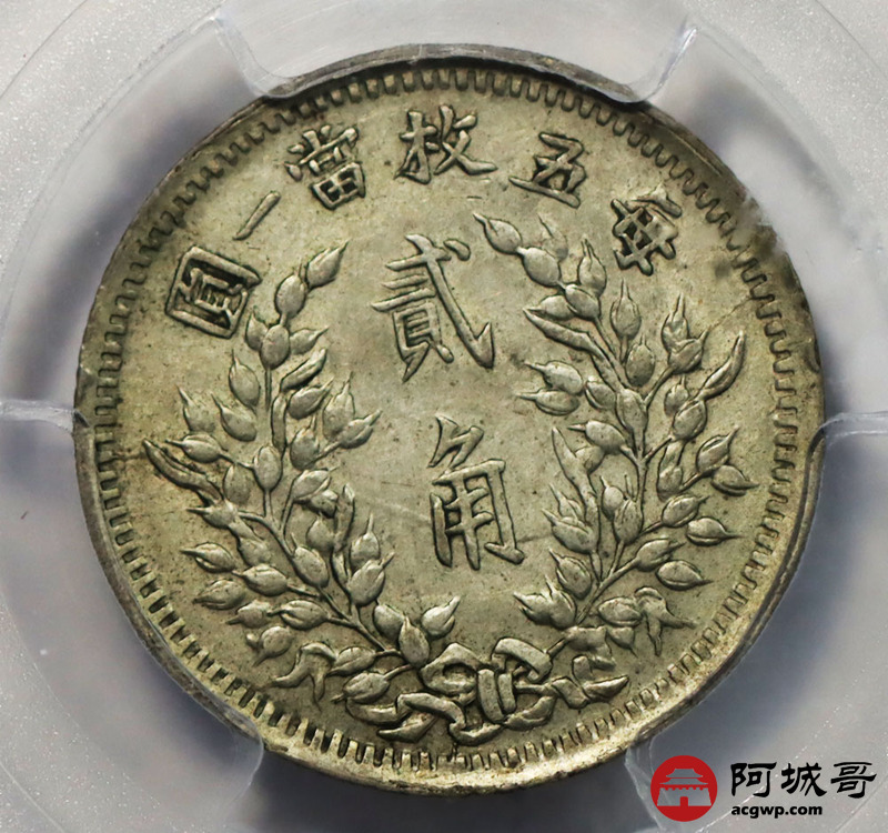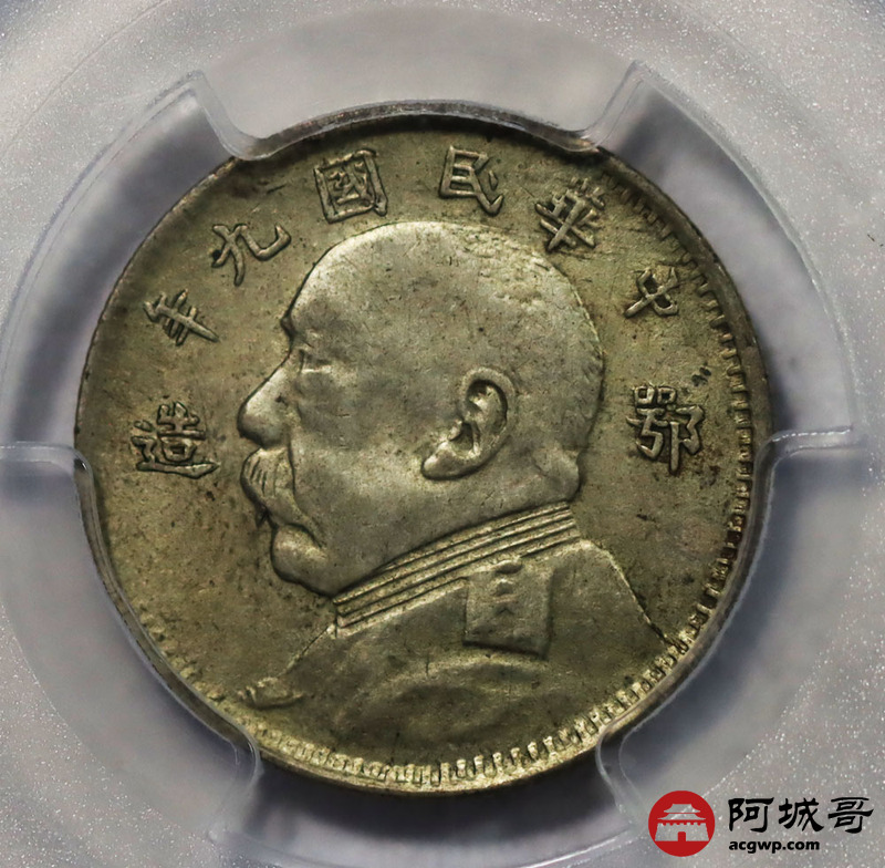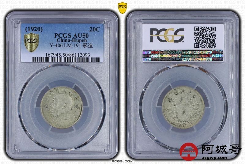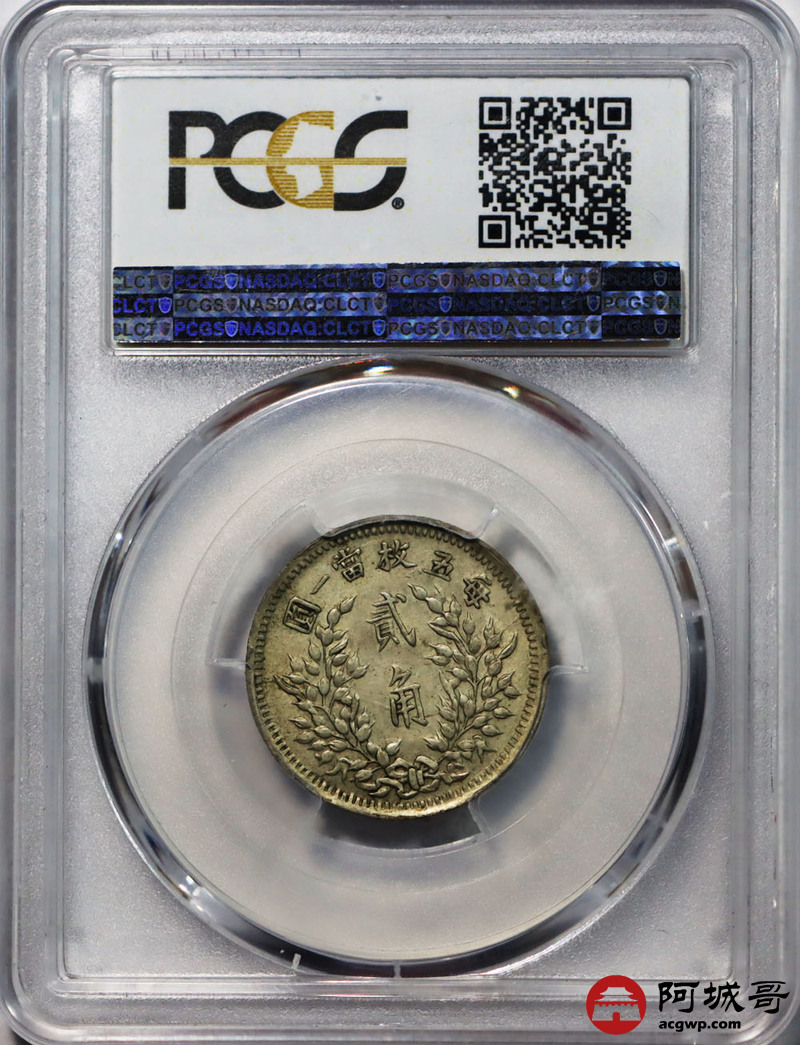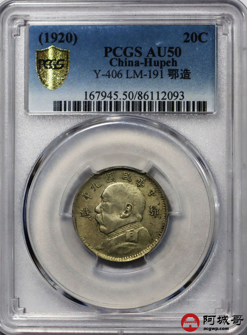 Lot:7 A民国九年大头鄂造贰角 黄油转光 PCGS AU50