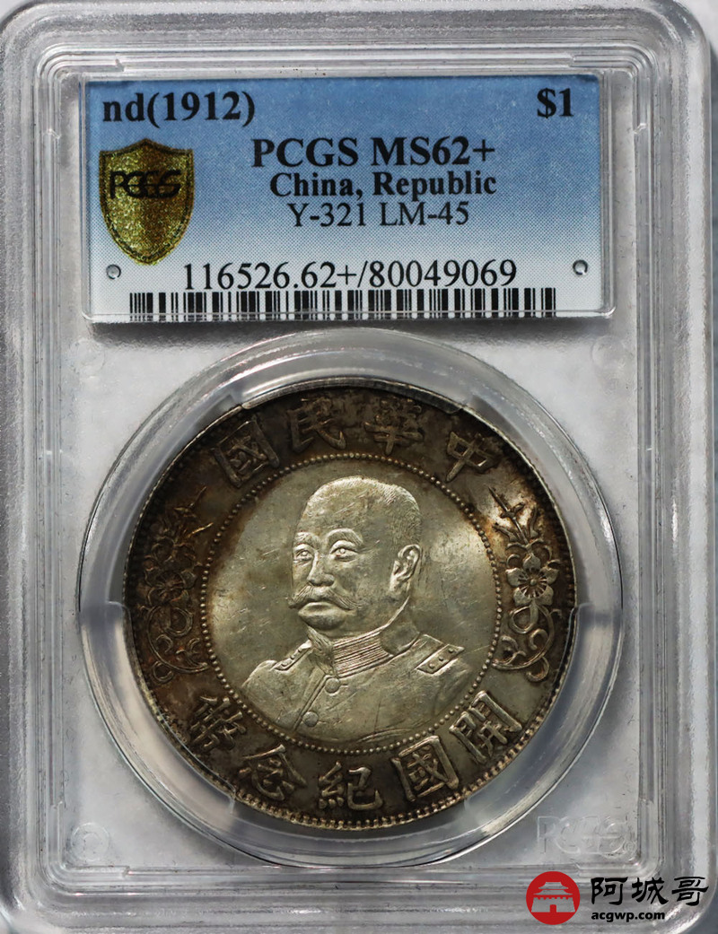 Lot:11 a开国纪念币黎元洪 五彩包浆 PCGS MS62+