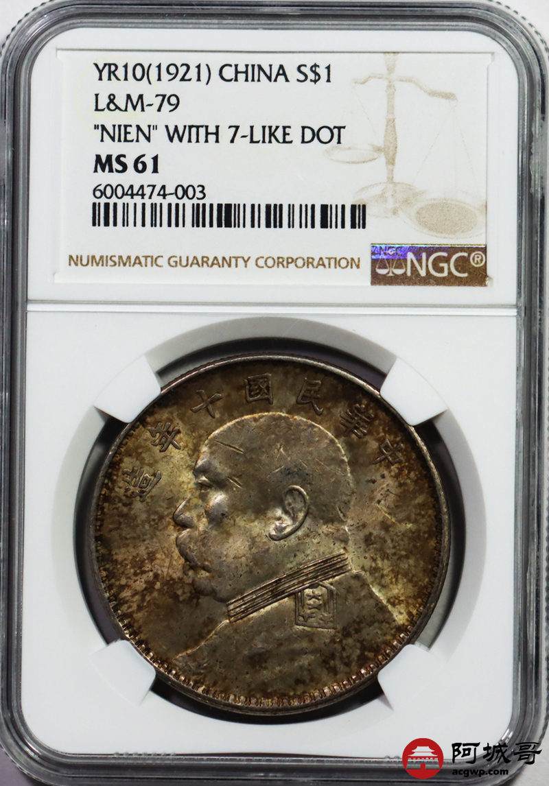 Lot:51 原光 金彩 民国十年大头NGC MS 61