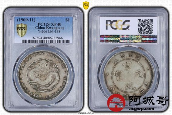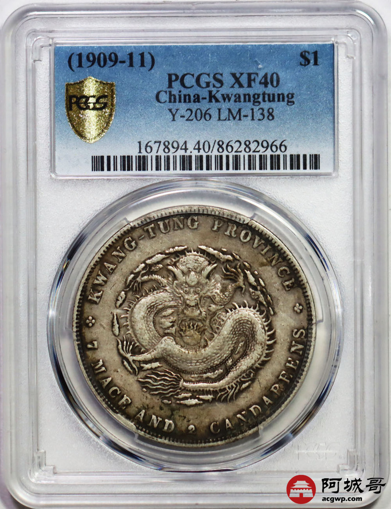 Lot:11 原味老包浆 广东宣统七钱二分 PCGS XF40
