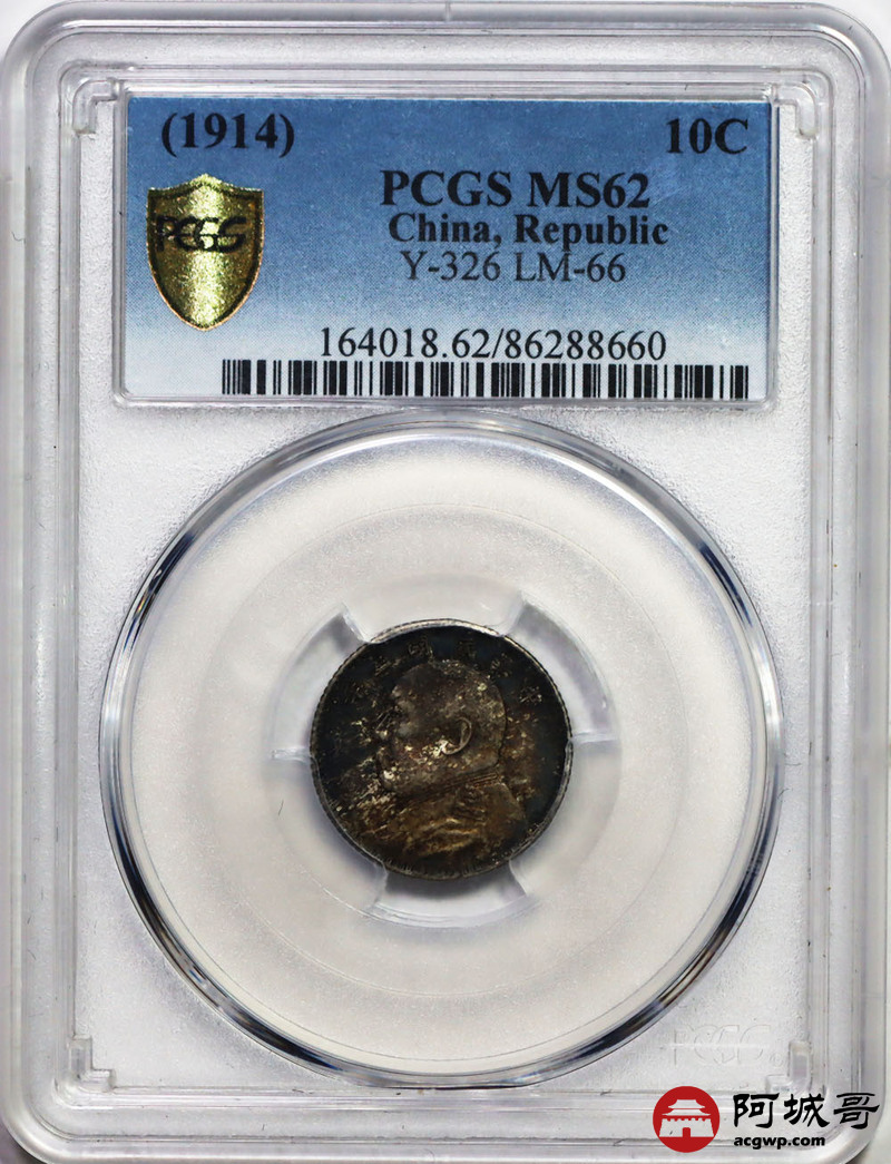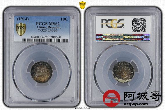 Lot:14 酱彩 三年大头壹角 PCGS MS62
