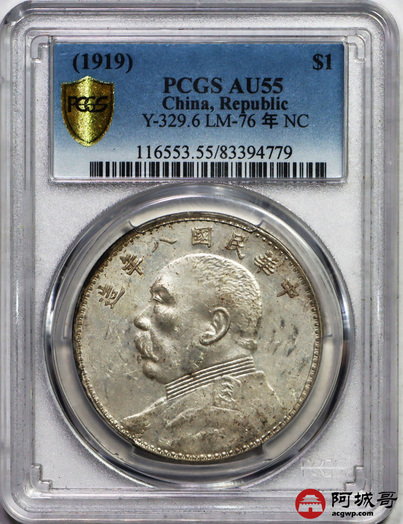 Lot:12 深打底光八年大头壹圆 PCGS AU55