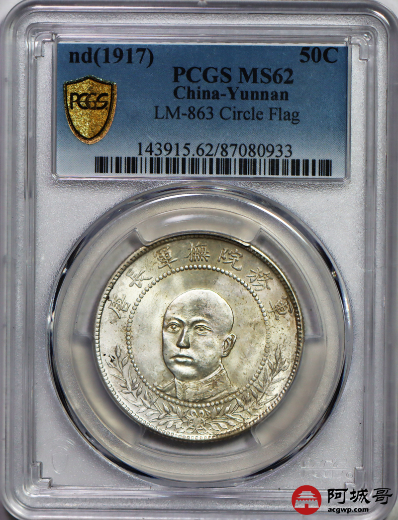 Lot:21 原光 粉彩 唐继尧正像半圆 PCGS MS 62