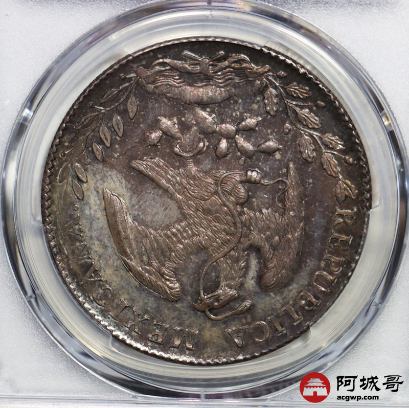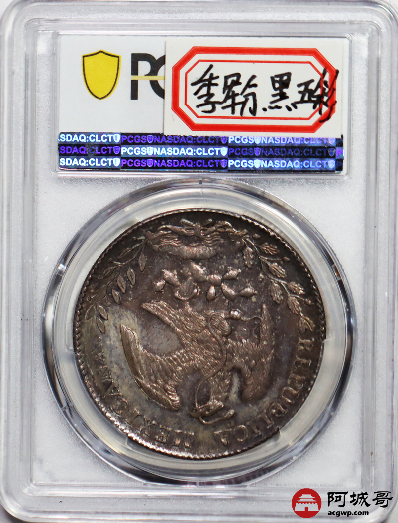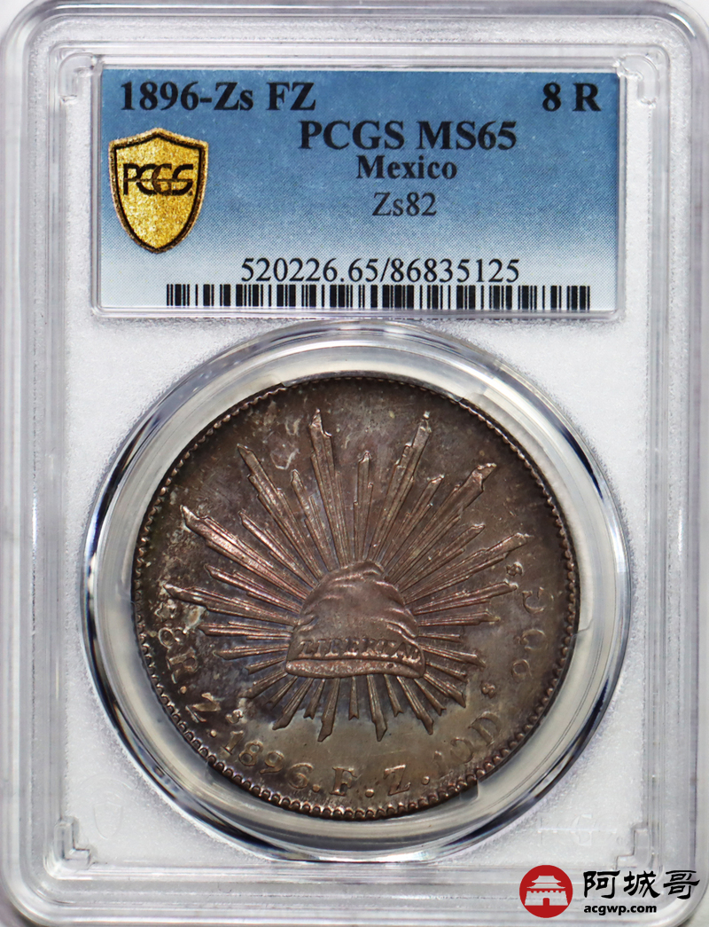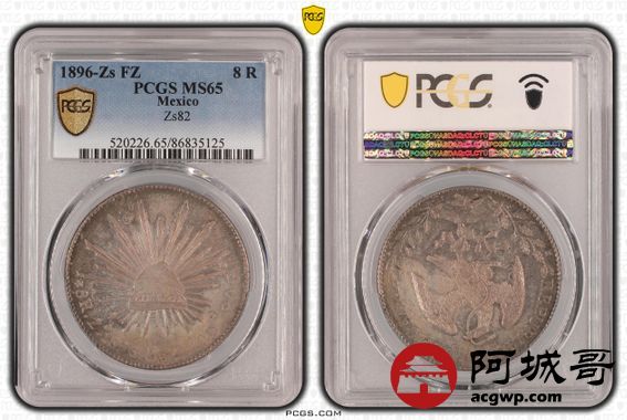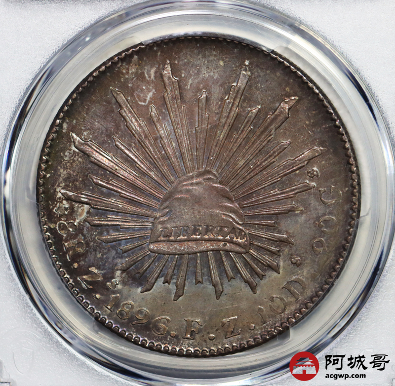 Lot:6 b五彩 转光 1896年墨西哥鹰洋 PCGS MS 65