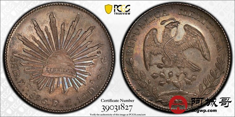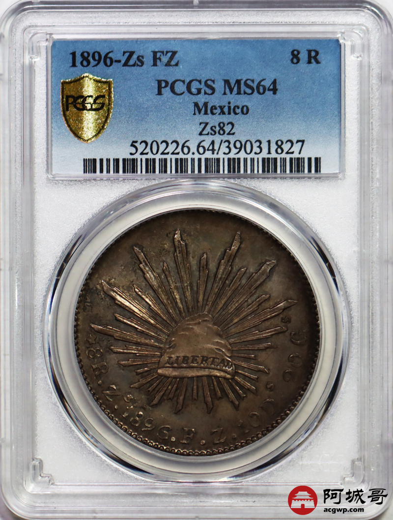 Lot:5 老包浆 墨西哥 1896年墨西哥鹰洋 PCGS MS 64