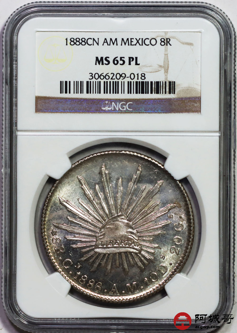 Lot:6 a原光 镜面 1888年 墨西哥鹰洋 NGC MS 65 PL