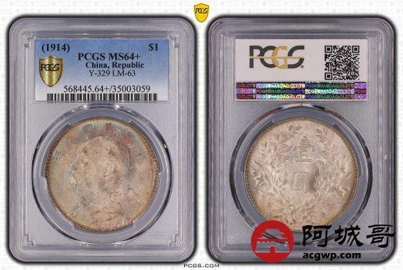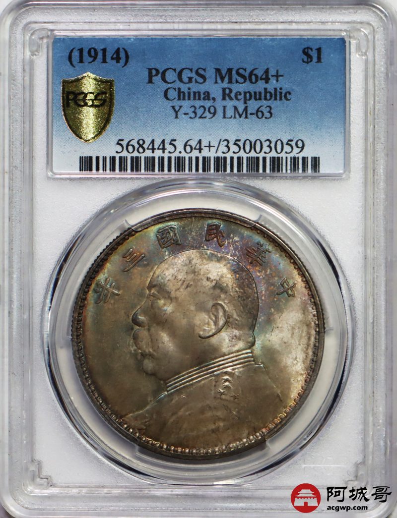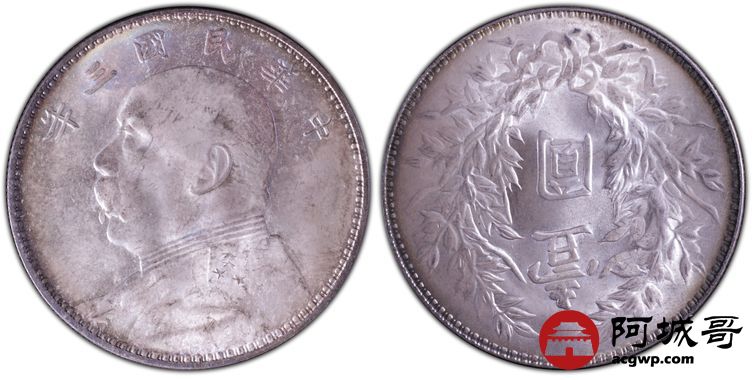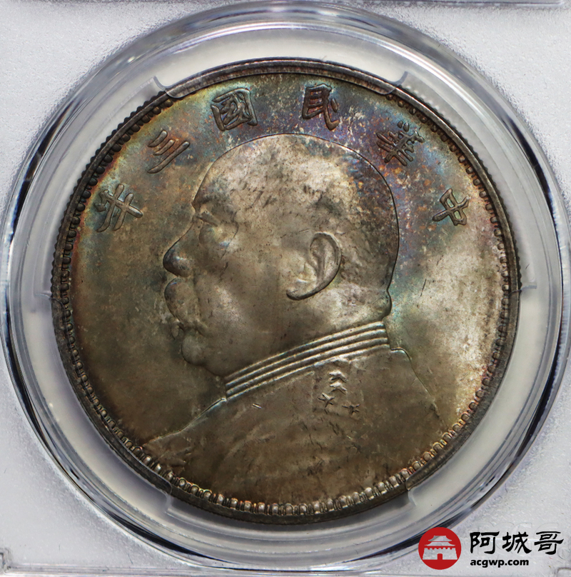 Lot:3 原光五彩 转光 民国三年三角元大头 PCGS MS 64