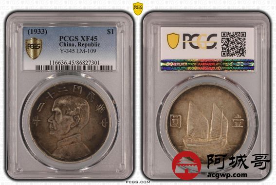 Lot:13 a酱彩 二十二年船洋 PCGS XF45