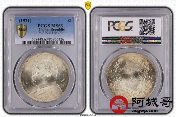 Lot:1 曝转光 十年大头壹圆 PCGS MS63