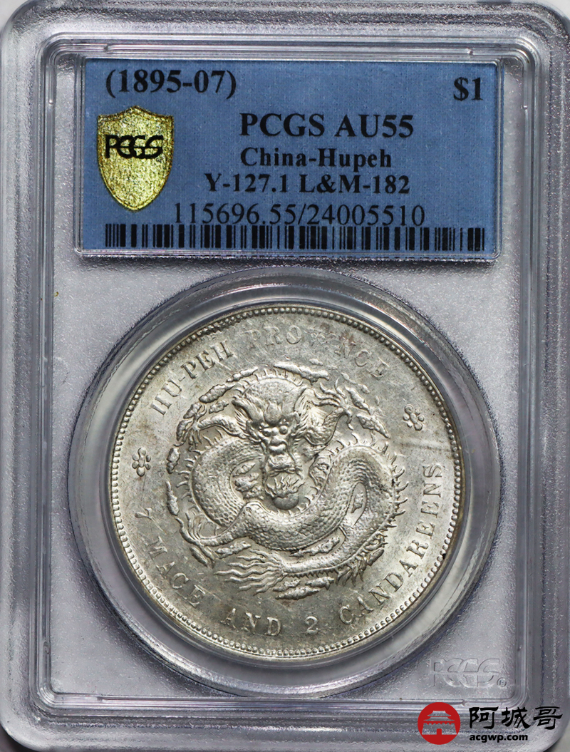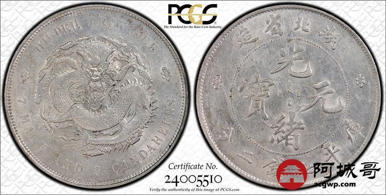 Lot:7 转光湖北光绪七钱二分 PCGS AU55