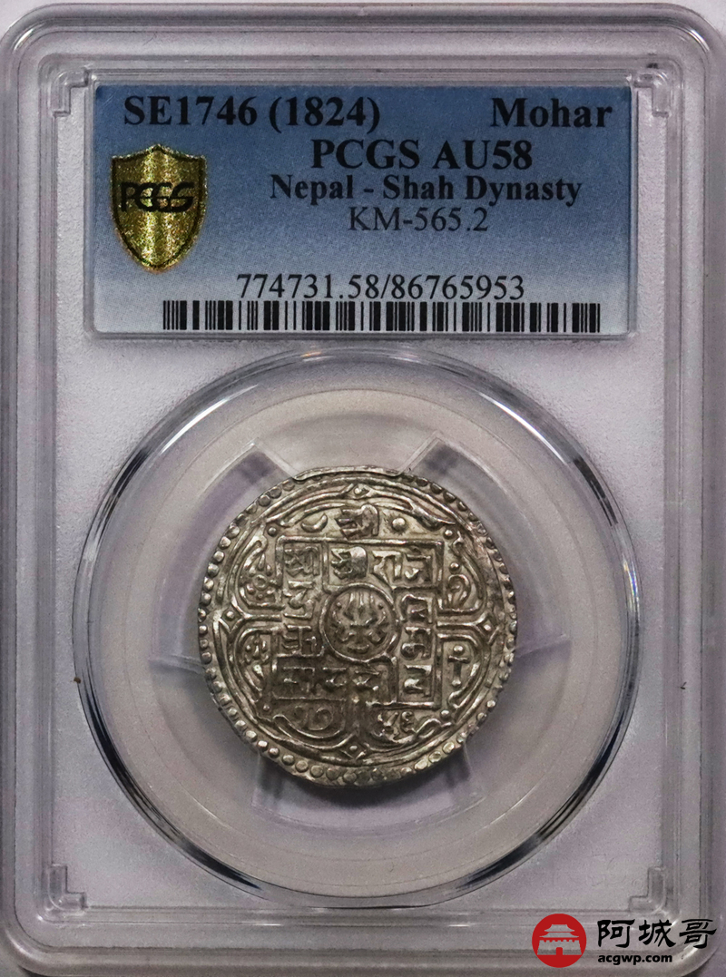 Lot:4 1824年西藏尼泊尔早期银币 PCGS AU58