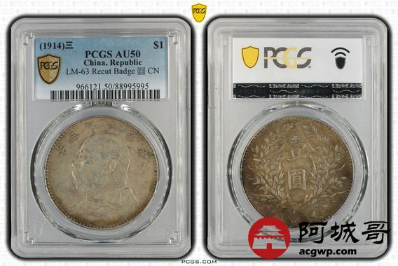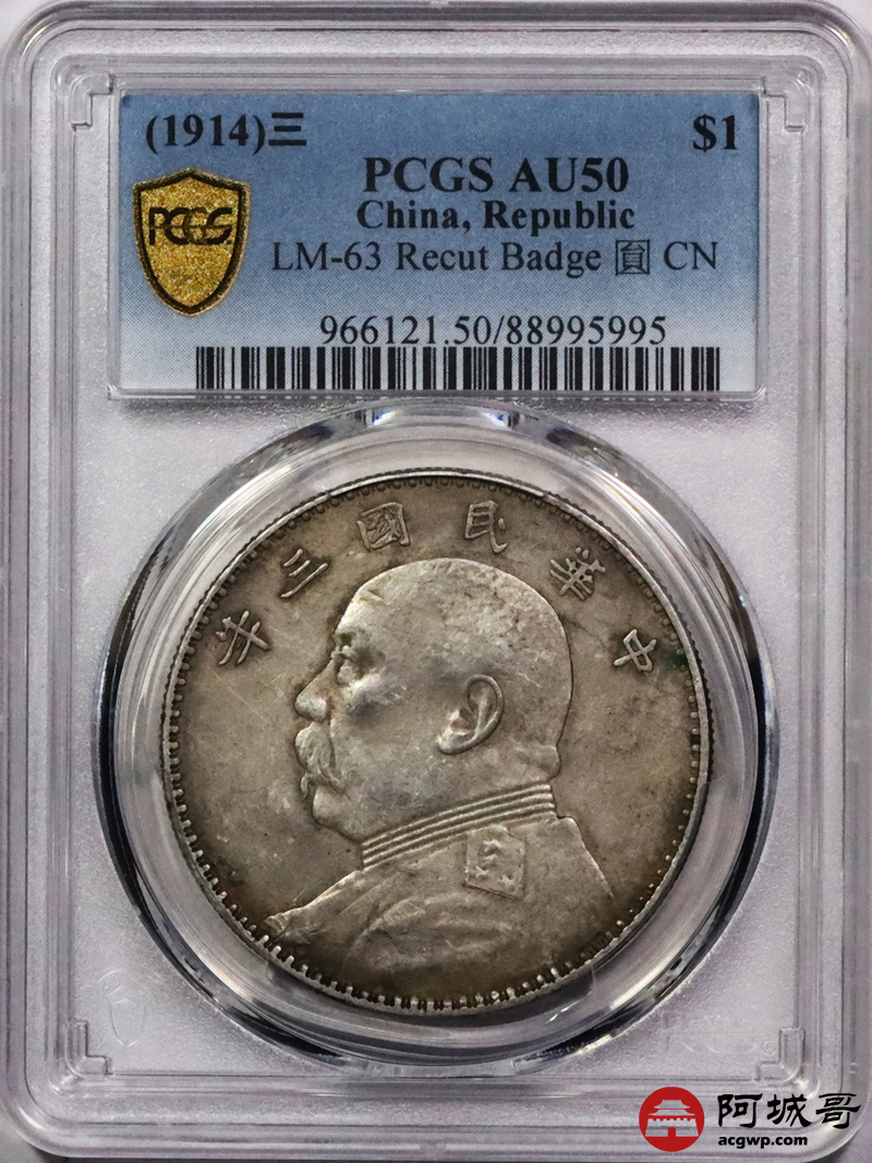Lot:22 民国三年大头壹圆 修肩章 PCGS AU50