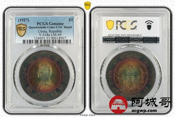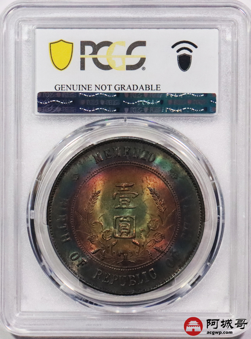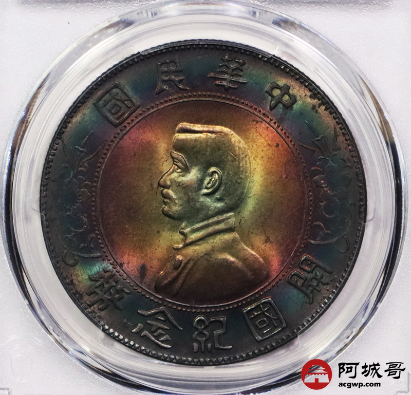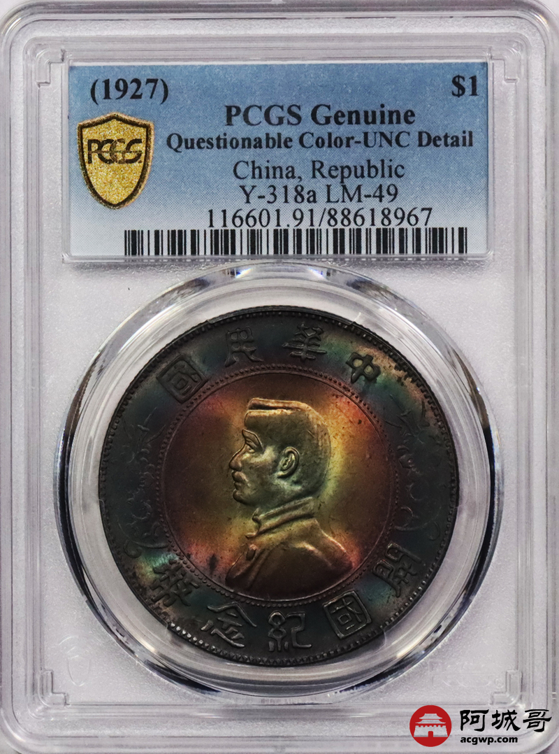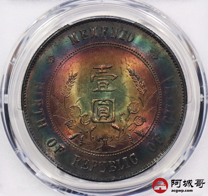 Lot:18 开国纪念币小头壹圆 绚丽五彩 PCGS UNC