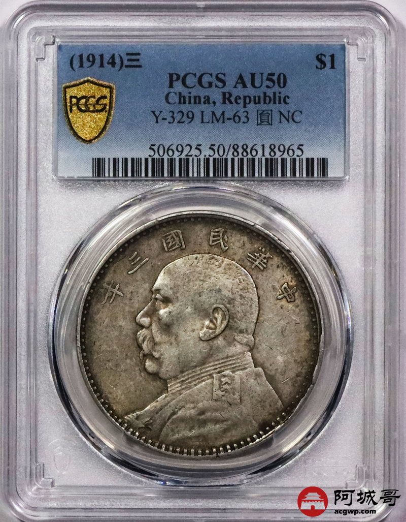 Lot:23 民国三年大头壹圆 PCGS AU50