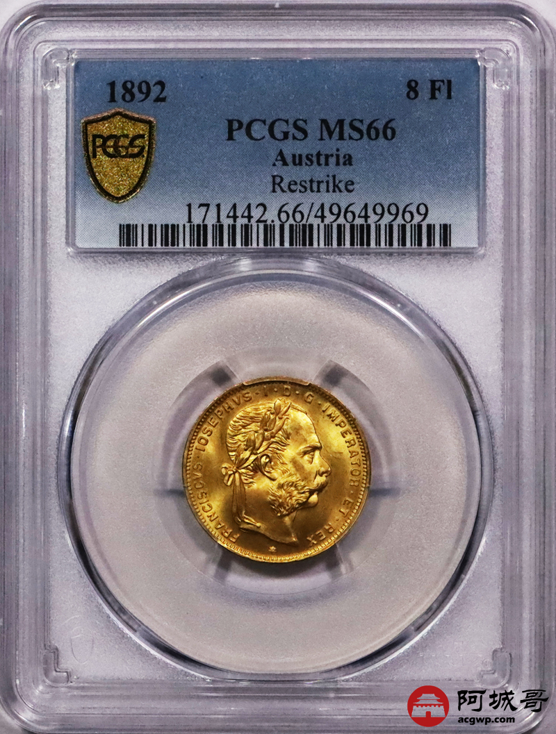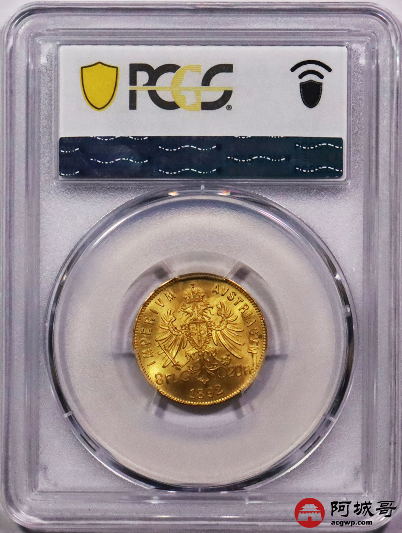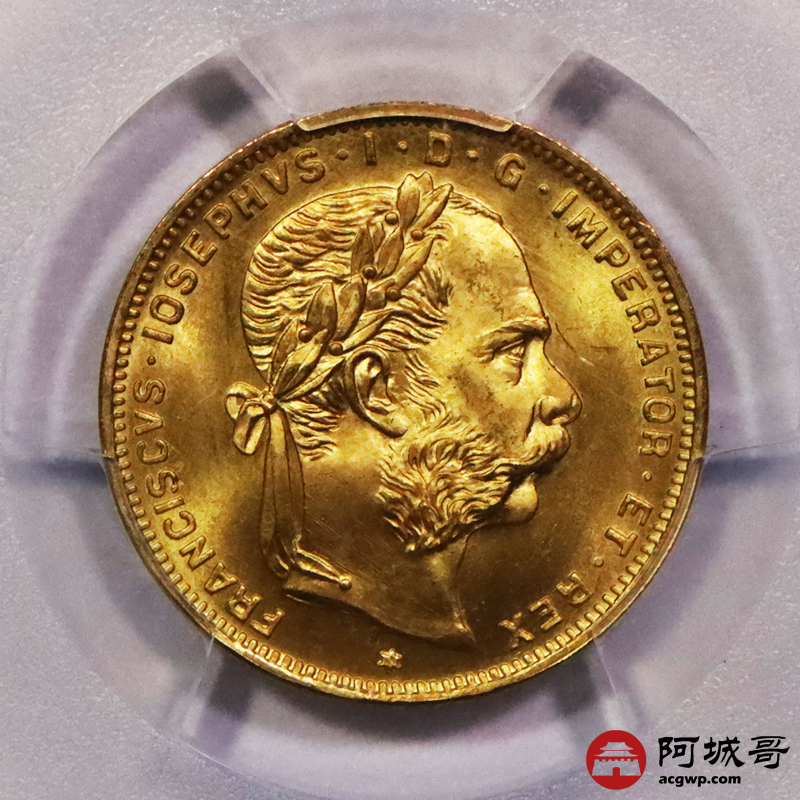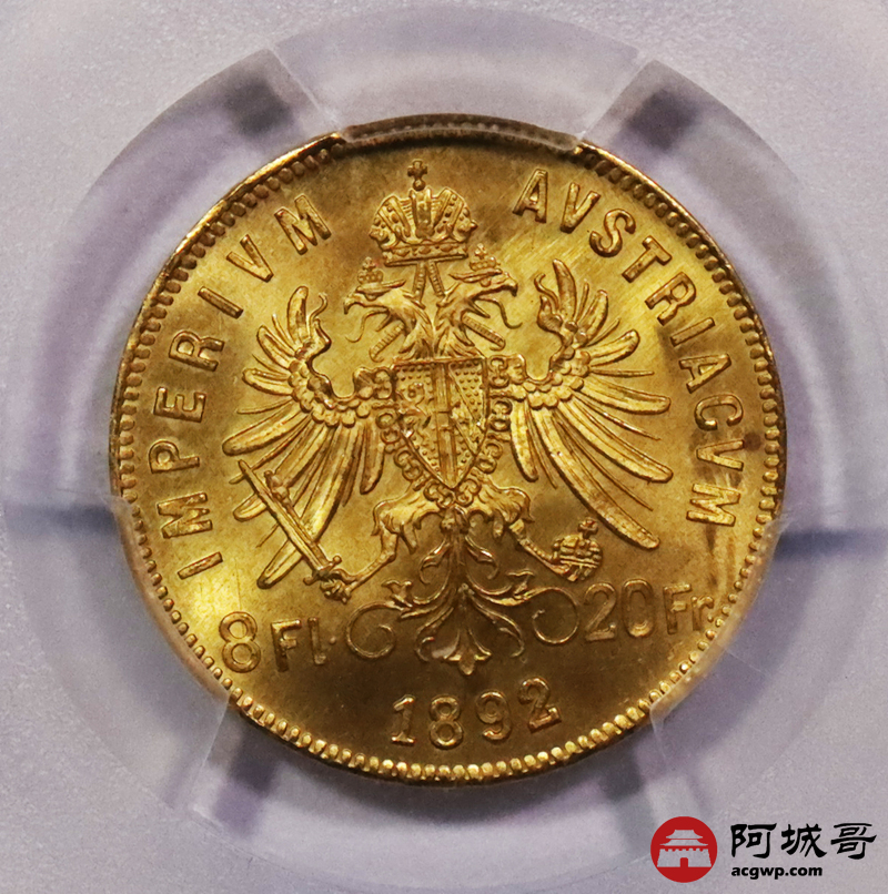 Lot:27 1892年奥匈帝国8佛罗林20法郎金币 PCGS MS66