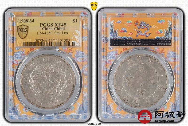 Lot:15 b深打 北洋34七钱二分小字版 PCGS XF45