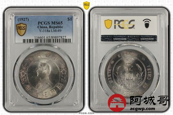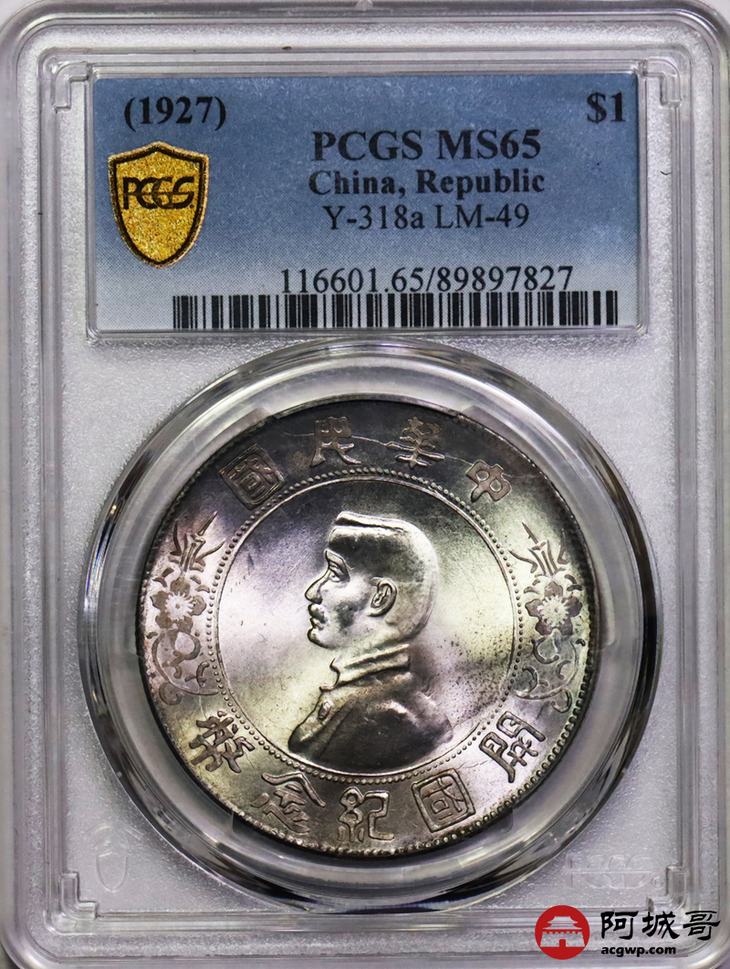 Lot:4 粉光 深打 孙像小头壹圆 PCGS MS65