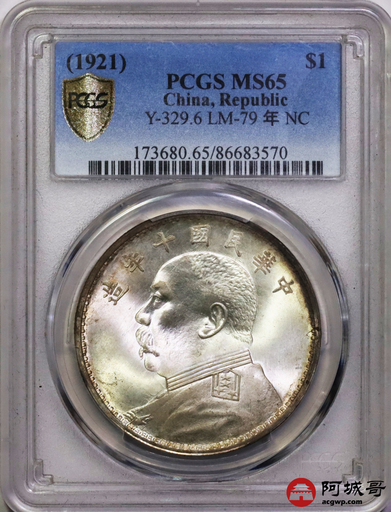 Lot:6 黄油淡彩 丝绸底板 十年大头壹圆 PCGS MS65