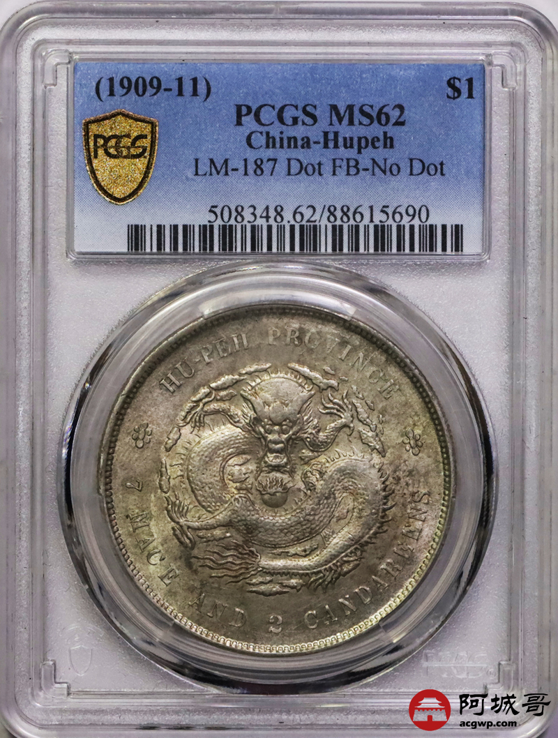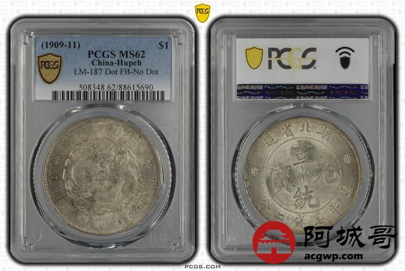 Lot:14 原味 黄油原光 湖北宣统七钱二分 PCGS MS62