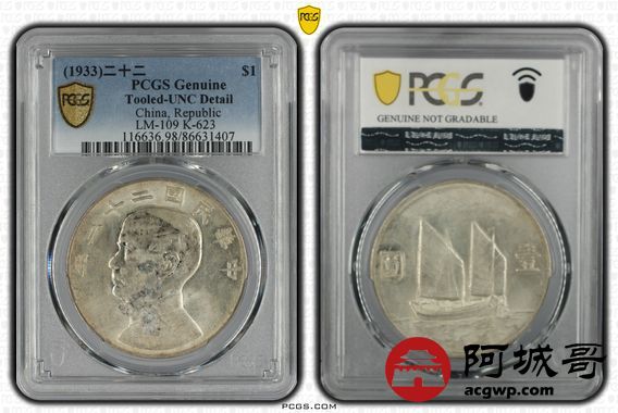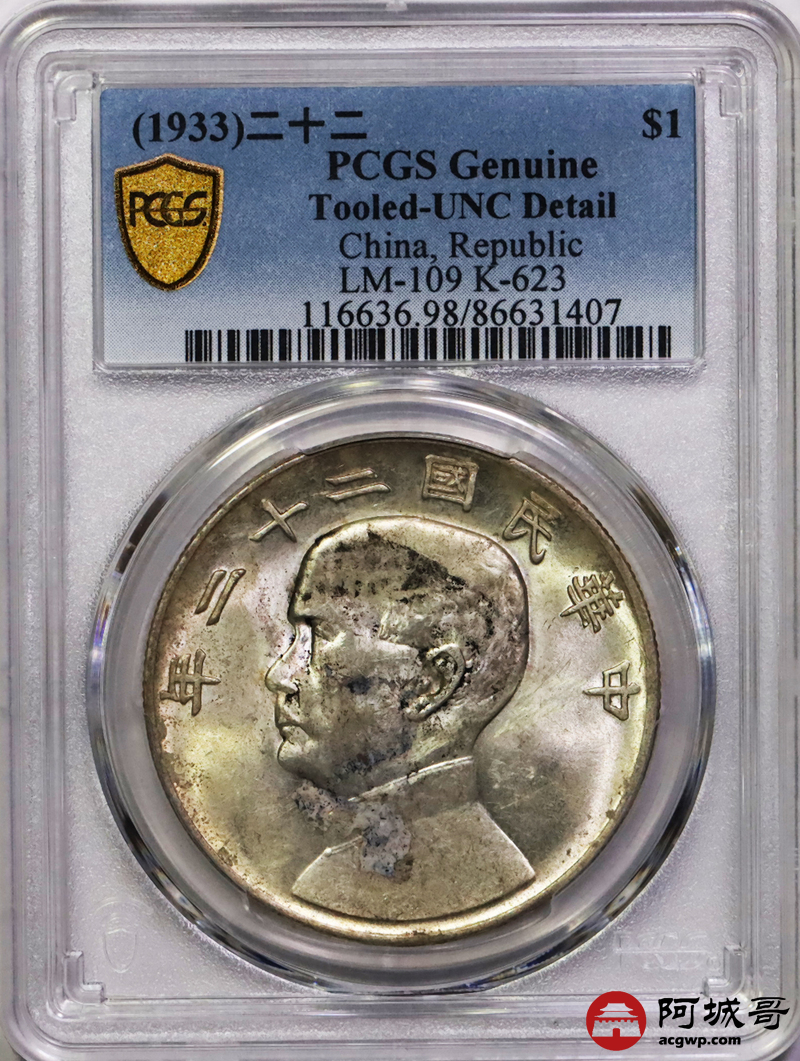 Lot:4 原光 深打 民国22年船洋壹元 PCGS UNC