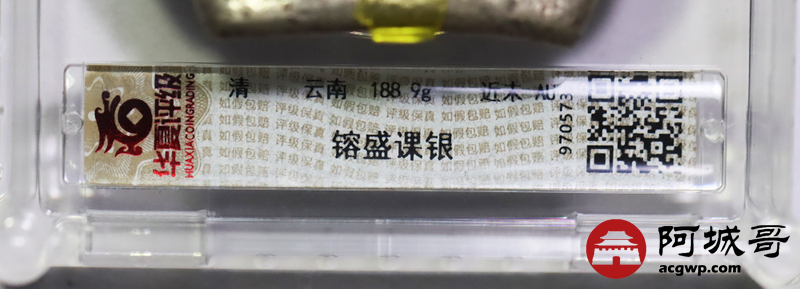 Lot:16 清-云南 镕盛课银 188.9克 华夏评级 近未 AU