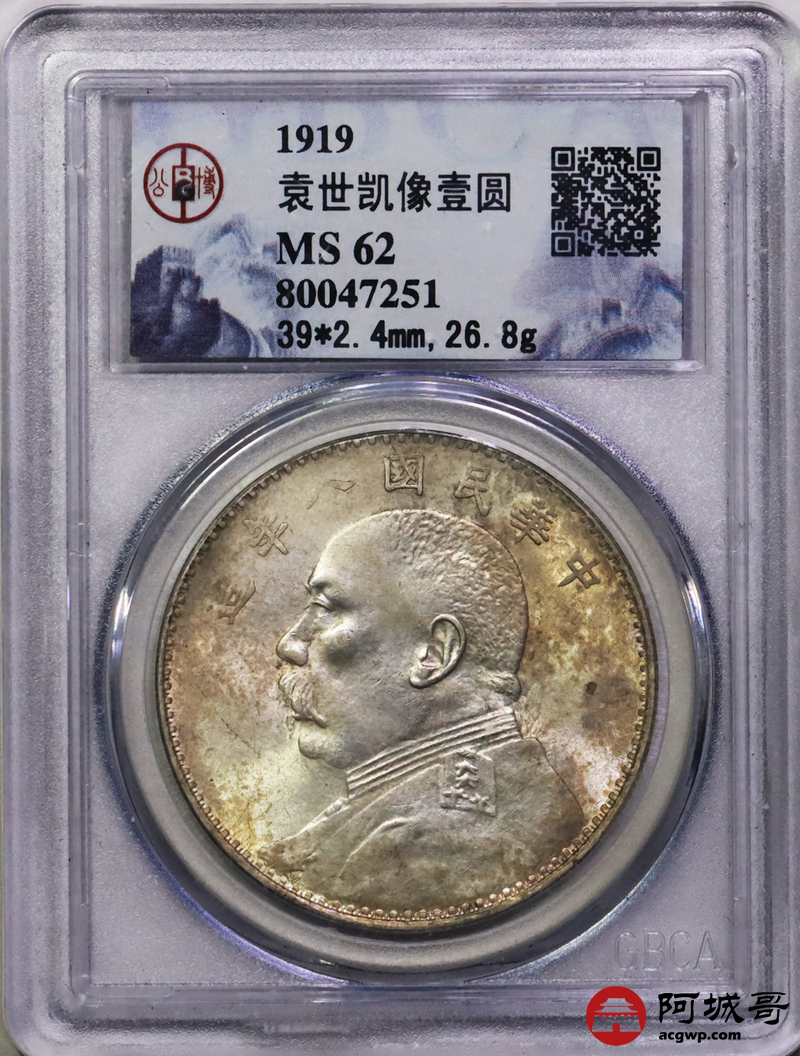 Lot:6 深打 黄油转光 八年大头壹圆 公博 MS62