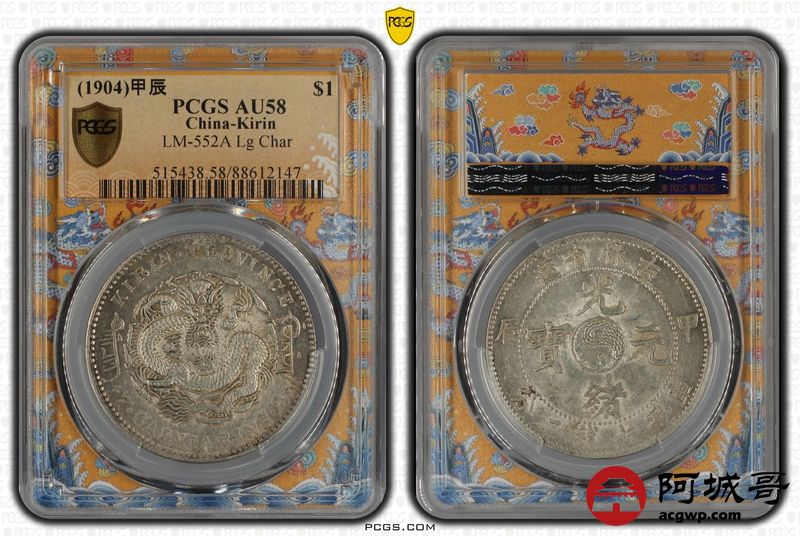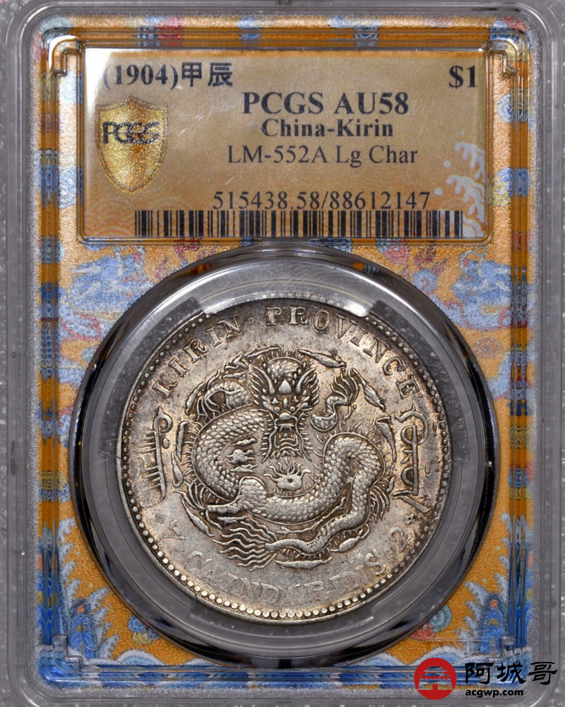 Lot:7 a黄油底光原味 吉林甲辰太极图七钱二分 PCGS AU58