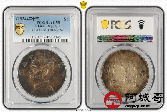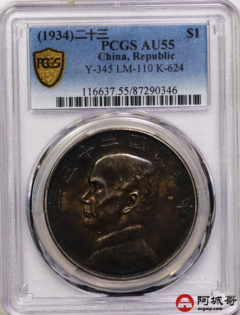 Lot:5 入骨酱黑老包浆 二十三年船洋 PCGS AU55