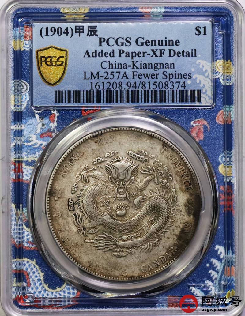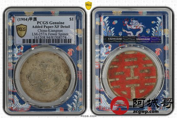 Lot:23 a原味 老包浆 江南甲辰七钱二分 双囍 PCGS XF