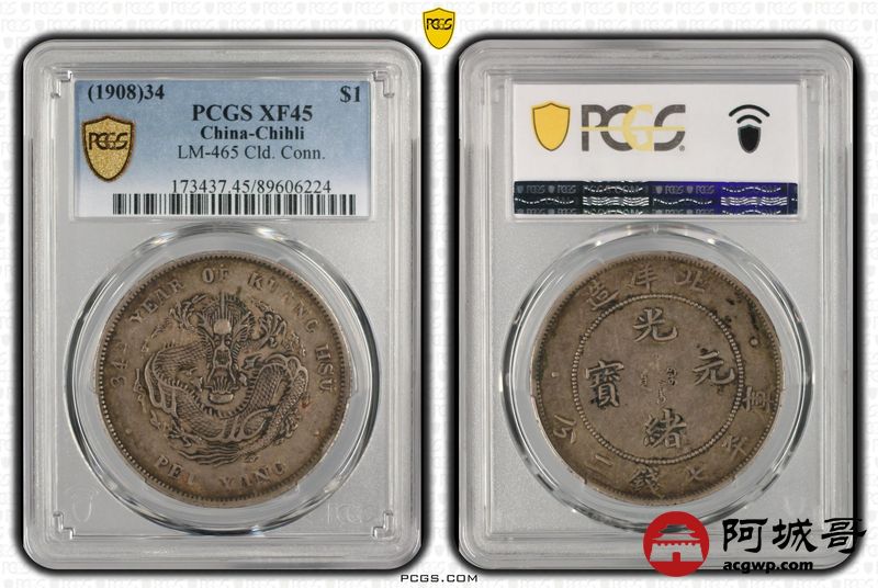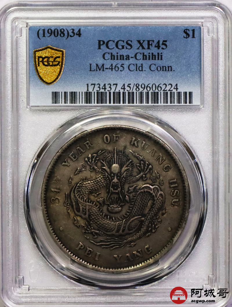Lot:10 b原味包浆 北洋34年七钱二分 PCGS XF45