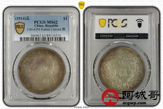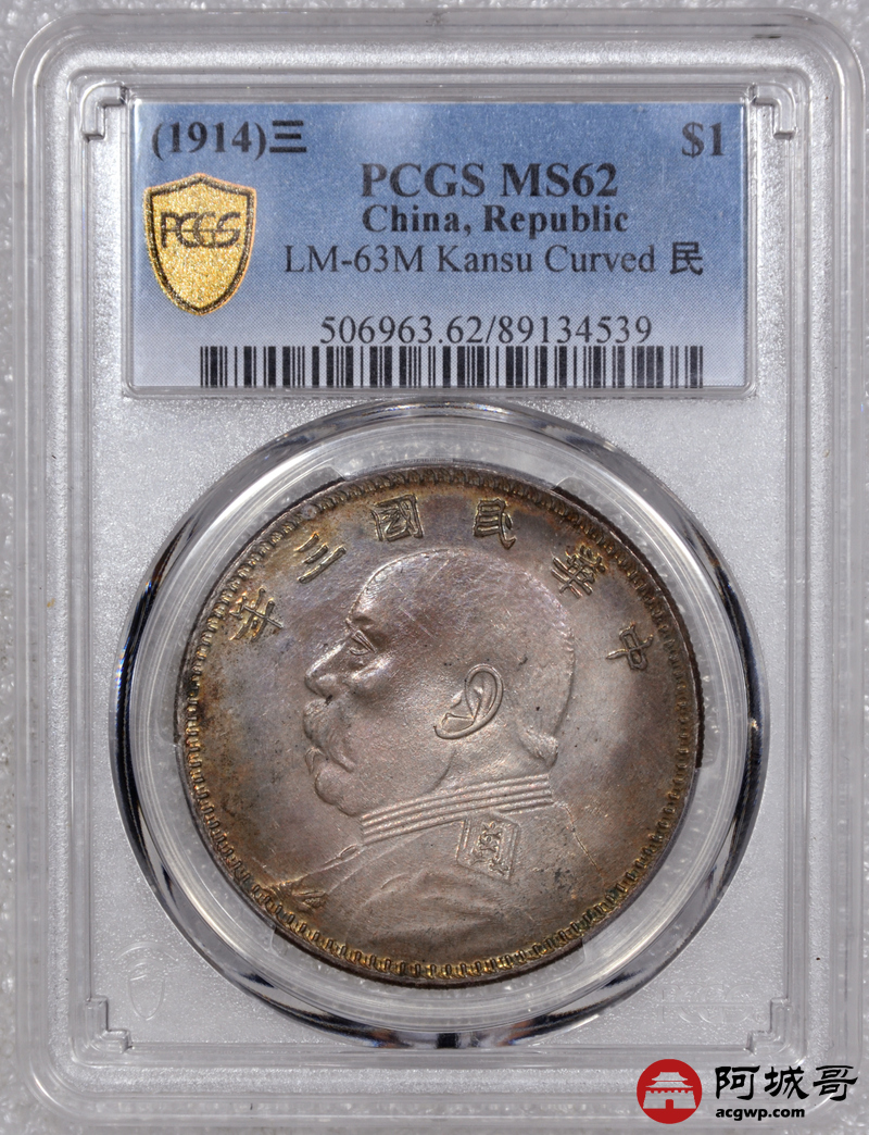 Lot:9 五彩包浆 民国三年大头 甘肃曲笔民 PCGS MS62