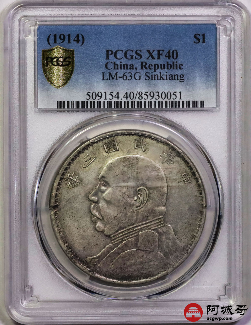 Lot:19 原味 民国三年大头壹元 新疆大叶版 PCGS XF40