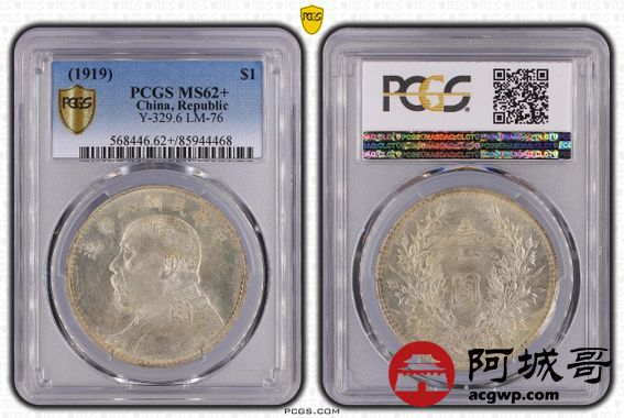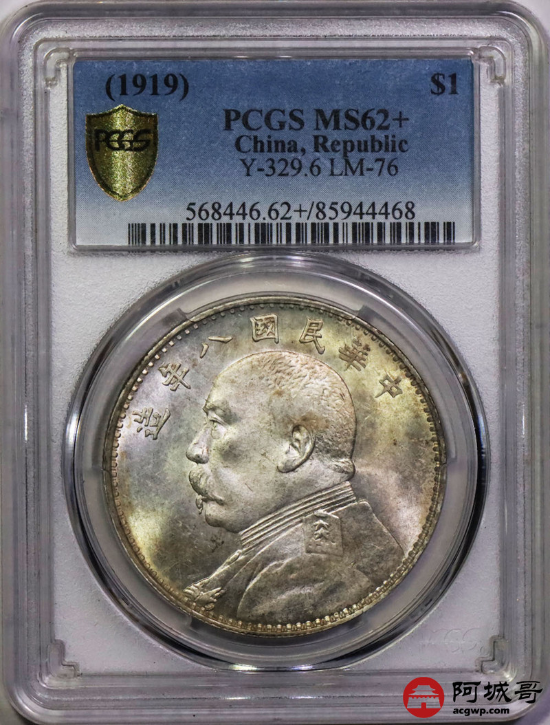 Lot:15 原色光 深打 八年大头壹圆 PCGS MS62+