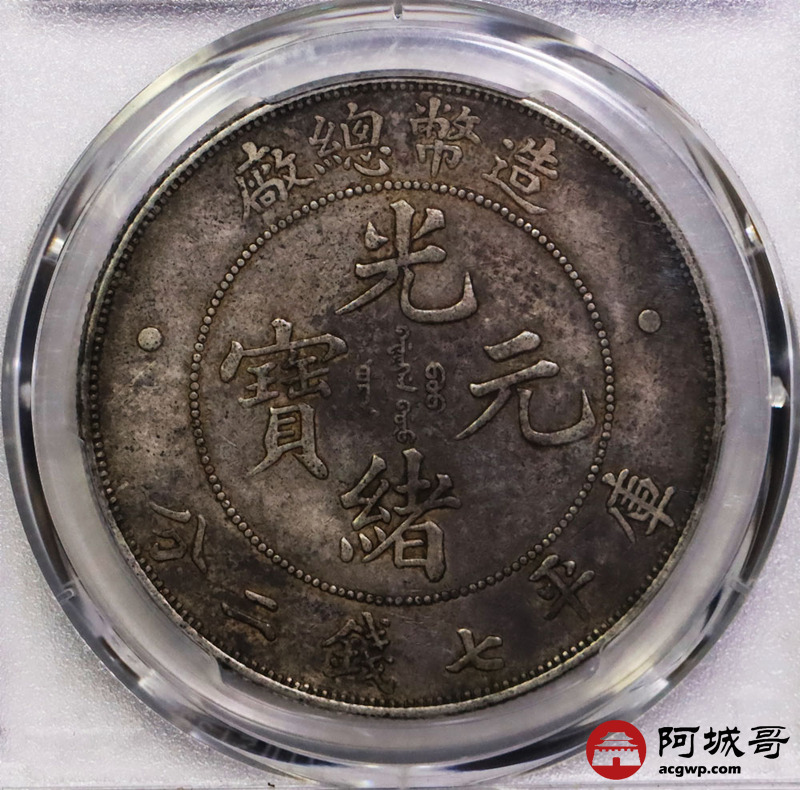 Lot:6 原味深打老包浆 造币总厂七钱二分 PCGS XF40