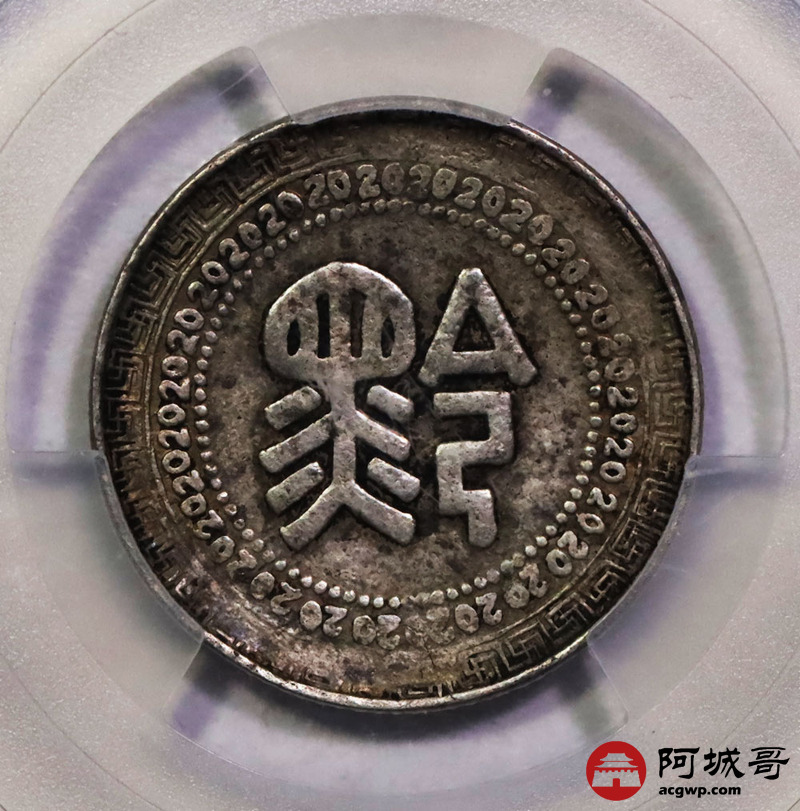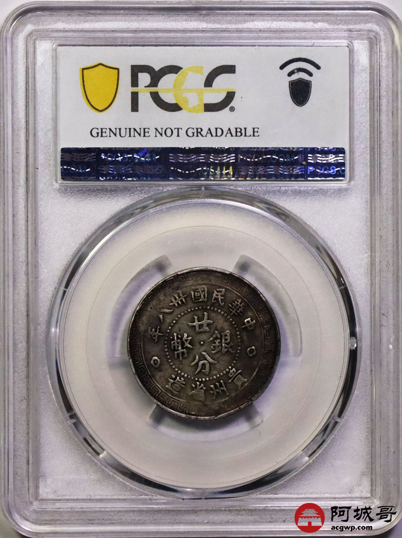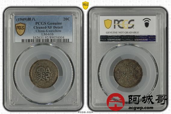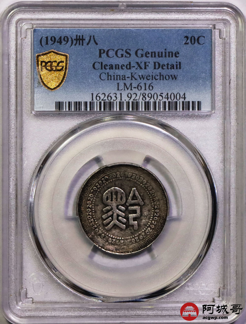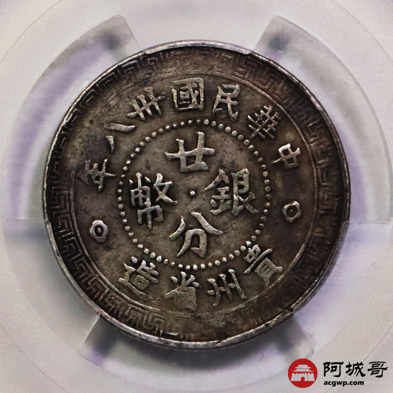 Lot:5 原味老包浆 民国三十八年贵州黔字二十分 PCGS XF
