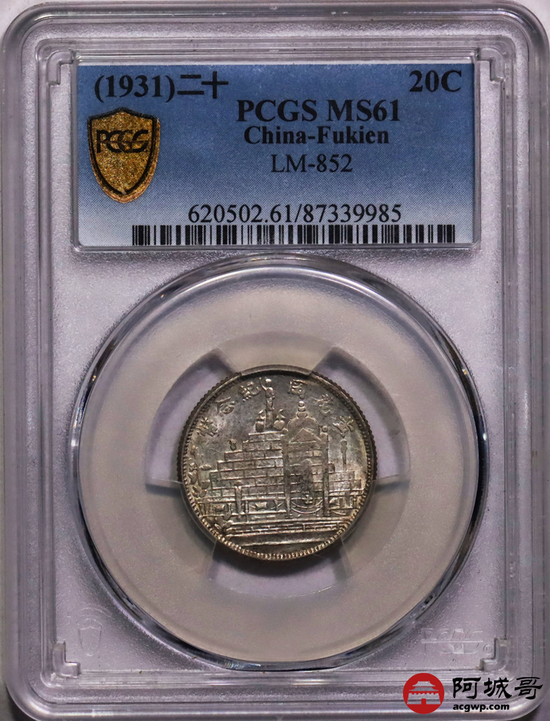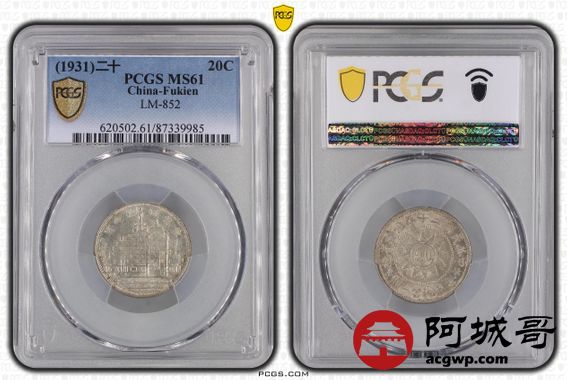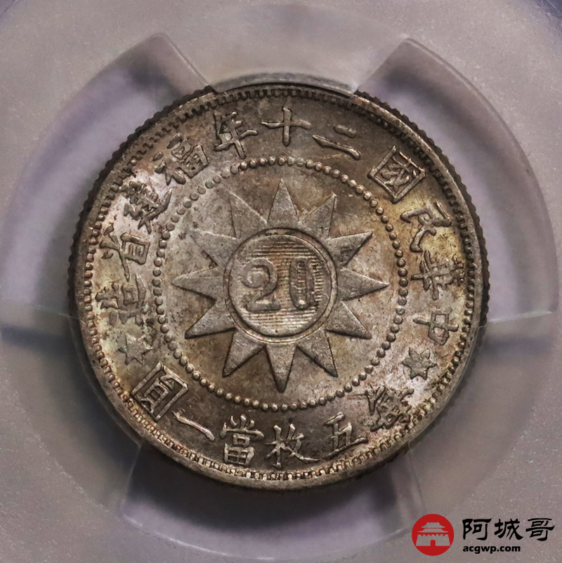 Lot:6 黄油原光民国二十年福建黄花岗贰角PCGS MS61